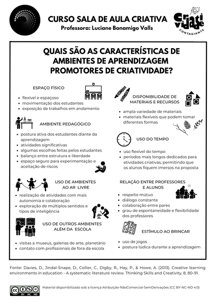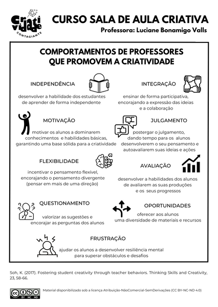 Além disso, ele inclui resultados de pesquisas científicas que mostram quais elementos realmente impactam na promoção da criatividade na sala de aula.